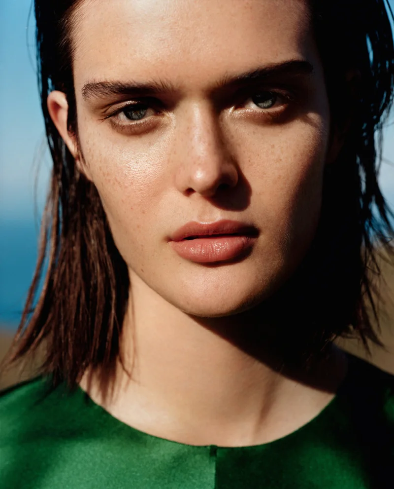 For the shoot - model Sam Rollinson was draped with dresses, asymmetrically hugging the curves of a her body as though she had recently emerged, fully dressed, from the water. Shiny emerald pantsuits, silky tanks and revealing cuts help tell the story of those classic drenched summer photos, filled with languid, and sensual poses set around sparkling pools that Aarons once captured.