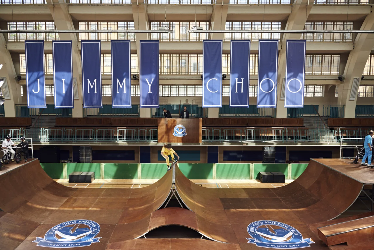 Thanks to the ingenuity of the production creatives over at Bureau Betak, Jimmy Choo was able to excite fashion's best with a stellar skateboarding and BMX show. Oh, wait. Did we mention that the athletes, were also the models? Yep! The shoe makers were able to put on an action-packed display of their Spring/Summer 16 Men's collection by creating a series of “Jimmy Choo Sporting Club” branded ramps for the athletes to play on at London's Seymour Leisure Center.