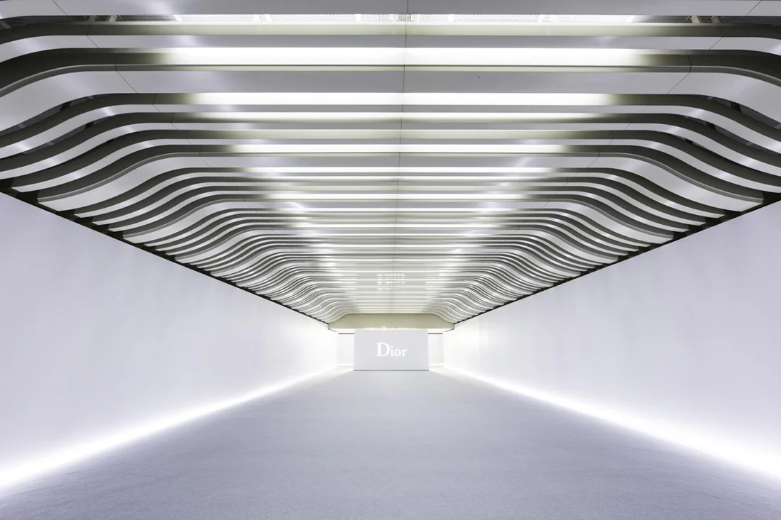 /Snapshot: Combine Dior's creative director Raf Simons, Bureau Betak's Alexandre de Betak and an iconic Japanese sumo stadium during fashion week, and you've got yourself a little bit of magic. Not quite as whimsical as Hayao Miyazaki's supernatural animations for Studio Ghibli, this "Espirit" exhibit does call his Japanese fantasies to mind, as spectators are transported into a parallel universe of perpendicular lines.
