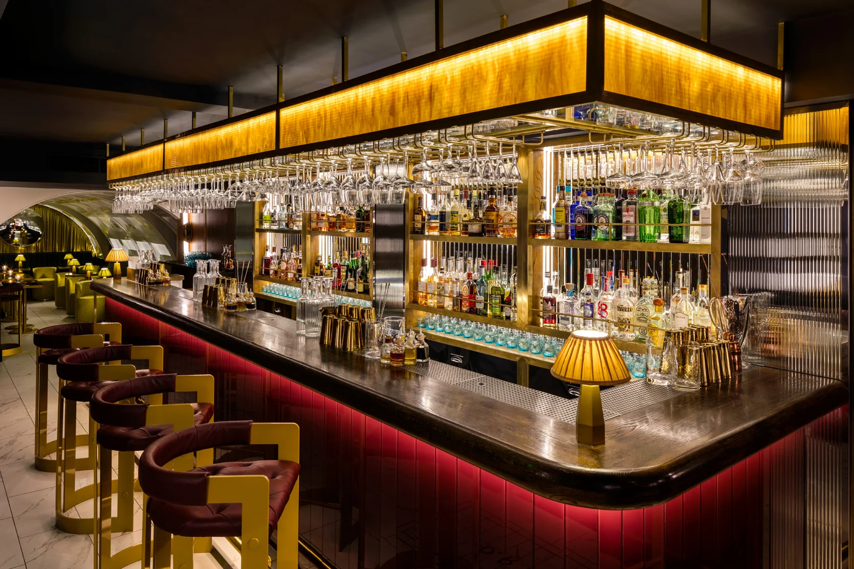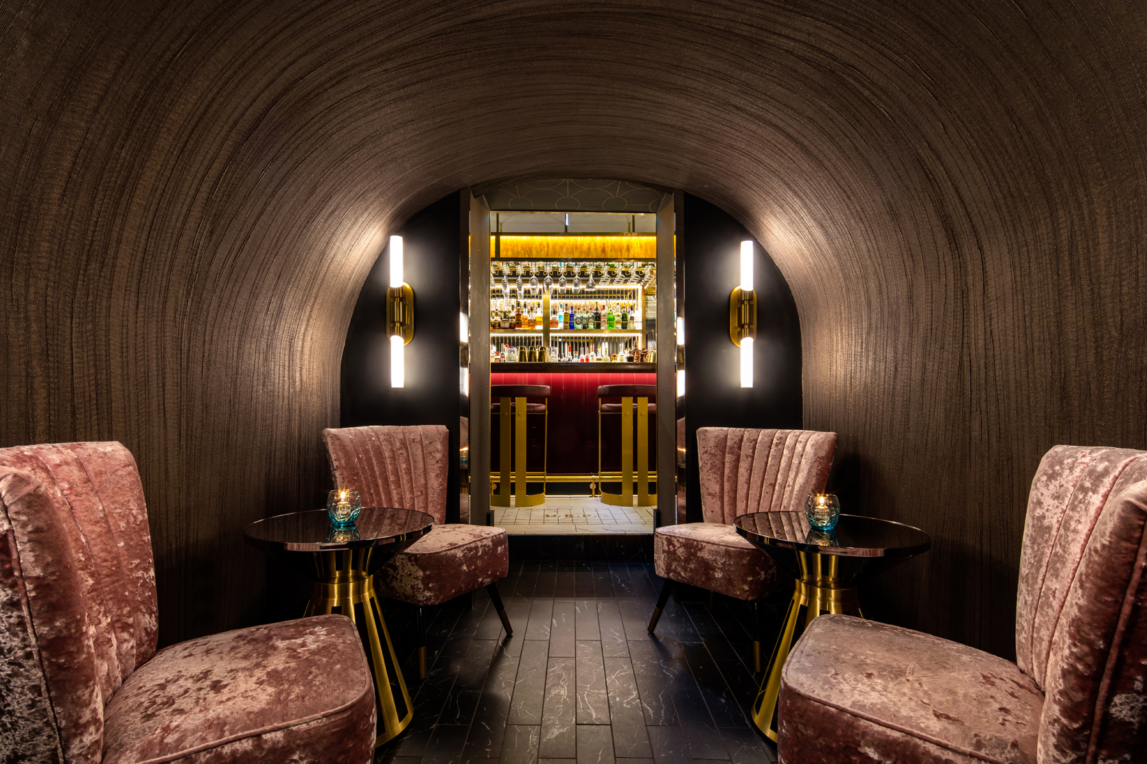 /Espionage. Scandal. Nefarious strangers. Soho’s lavish, 60s inspired speakeasy has all the makings of a Goldfinger-era Bond flick. London-based branding gurus, Two Times Elliott, deftly dialed in glossy marble floors, brass accoutrement, and velvet for days creating an Insta-worthy hideout known only as Disrepute (D.R.P. to the cool kids).