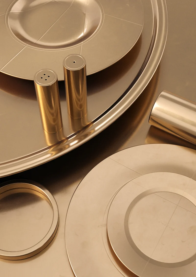 For centuries, Leonardo’s image has inspired design of all types, even making its way into a tiny Parisian restaurant today. Plated on porcelain and salted with marble, the designers employed the finest of classic materials to house the timeless angular design. The meticulous, gold lines drape across plates, menus and tea cups in an intentional and bold, judicial way - boasting a sense of upright authority for the court-side establishment.