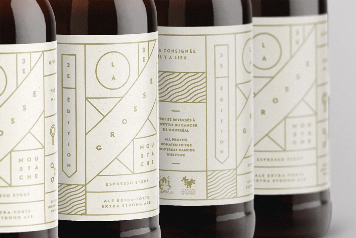 Art Director Michael Mason created the packaging design for La Grosse Moustache, a limited run of espresso stout produced annually in by Chez Latina, in Montréal, Canada.