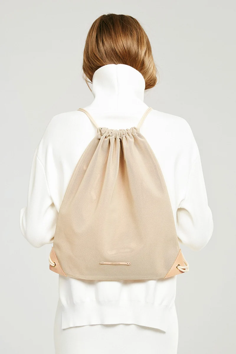 The presentation features coffee-milk colored high-neck sweaters paired with rose pink shorts, micro black dotted espadrilles, hand-stitched gym bags and all white ensembles. Nanushka's SS '15 collection feels like a breezy day.